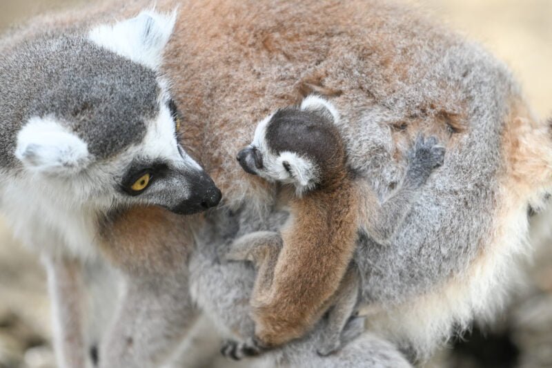 The park’s keepers have not yet been able to confirm the gender of the new arrival, as baby lemurs spend the first few months of life piggybacking on their mums.